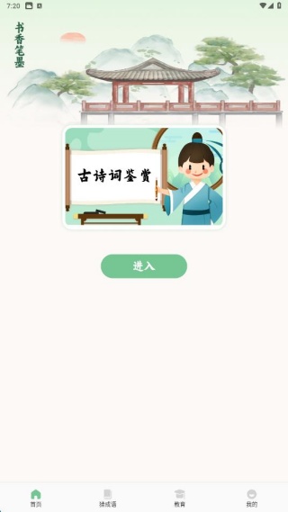 1、安装进入app首页,展示了古诗词鉴赏专区功能,点击进入。