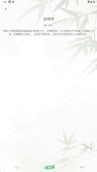 5、还有诗词翻译内容展示,也能查看赏析,加深我们对于诗词的理解。