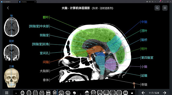 1、e-Anatomy提供的脑部CT影像质量相当出色,清晰可见。