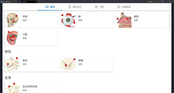 e-Anatomy中文免费版可以为专业用户提供不错的人体解剖图谱,让用户在里面轻松查看各种实例图片,为用户提供了有效的学习和参考,并且还能对图片进行放大、缩小、旋转等,让用户更好的进行观察,除此之外,软件离线也能使用,为用户提供不错的服务!