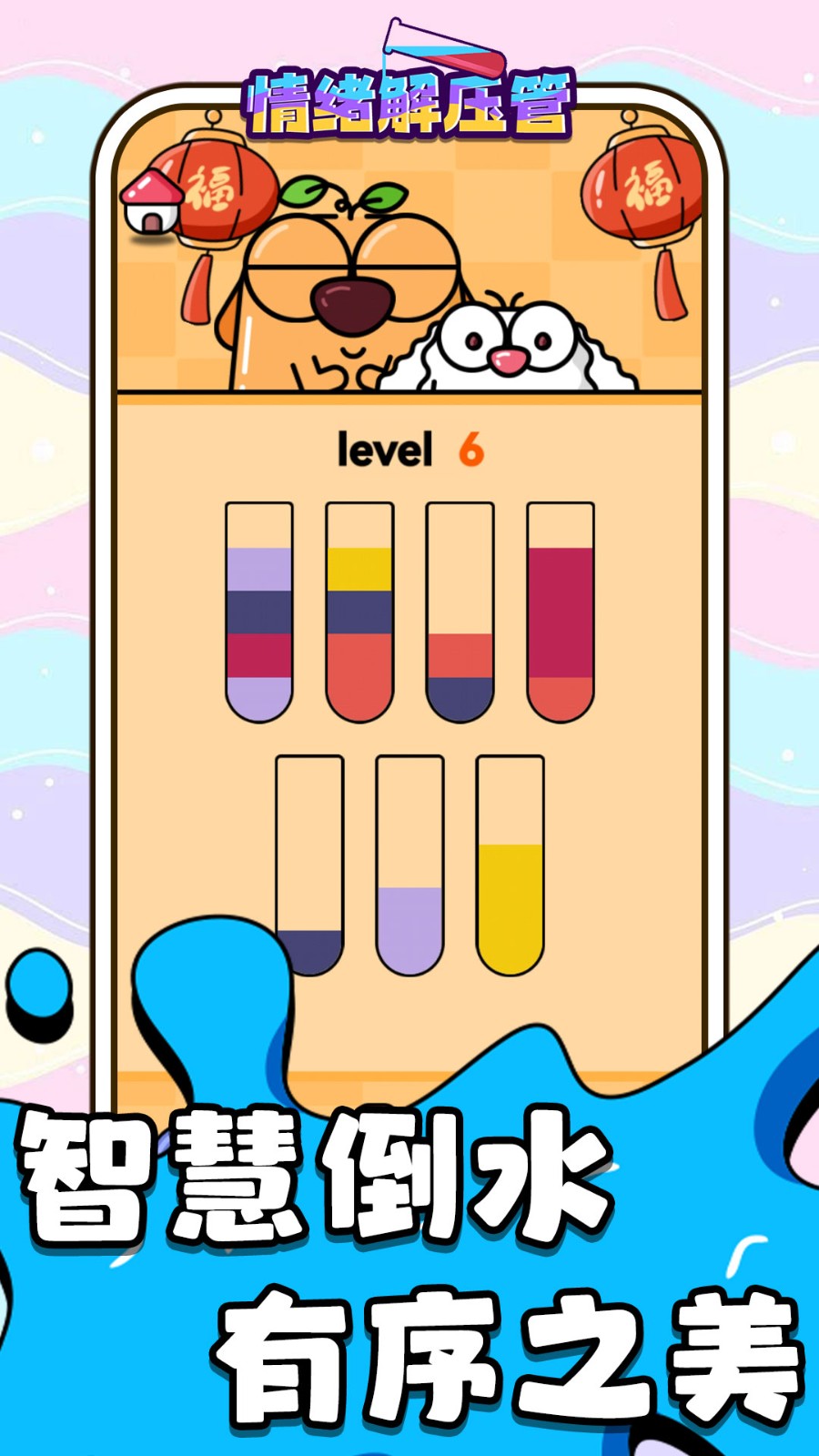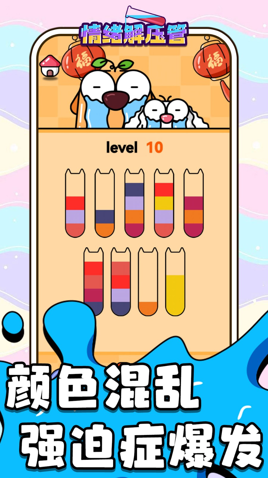 情绪解压管是一款休闲解压类游戏,游戏采用简约的画面设计,游戏中设置多种关卡挑战,每一关都是策略与时间的碰撞,玩家需要在规定时间内完成同一种液体的归类,超过时间挑战失败,非常考验玩家灵活的思维,喜欢的玩家快来下载试试吧!