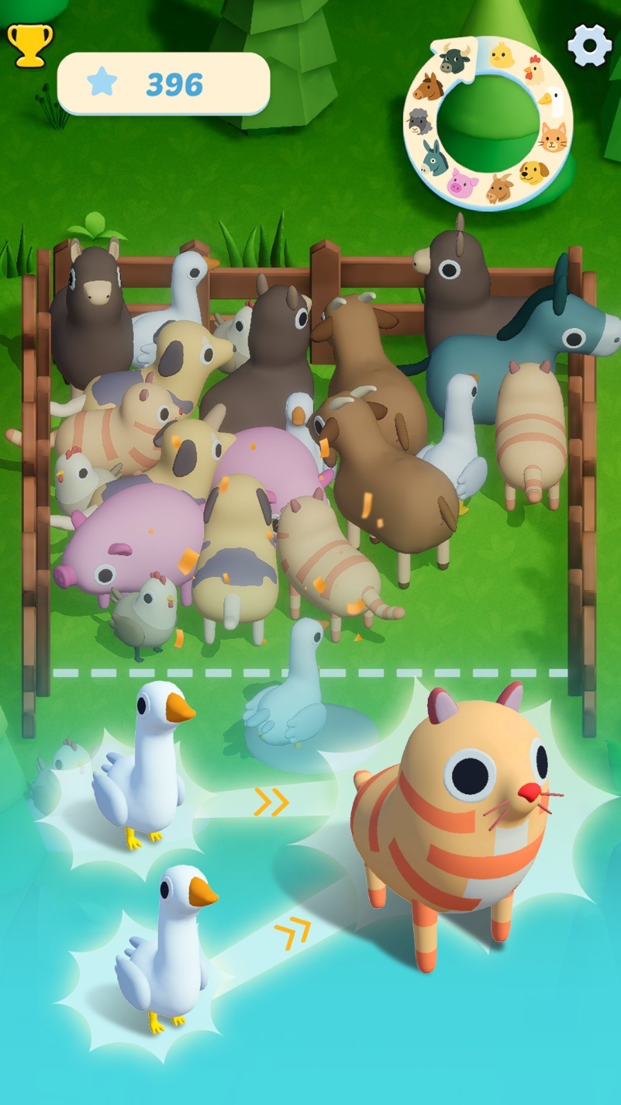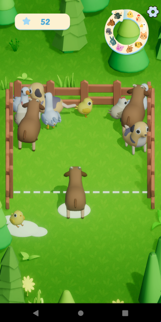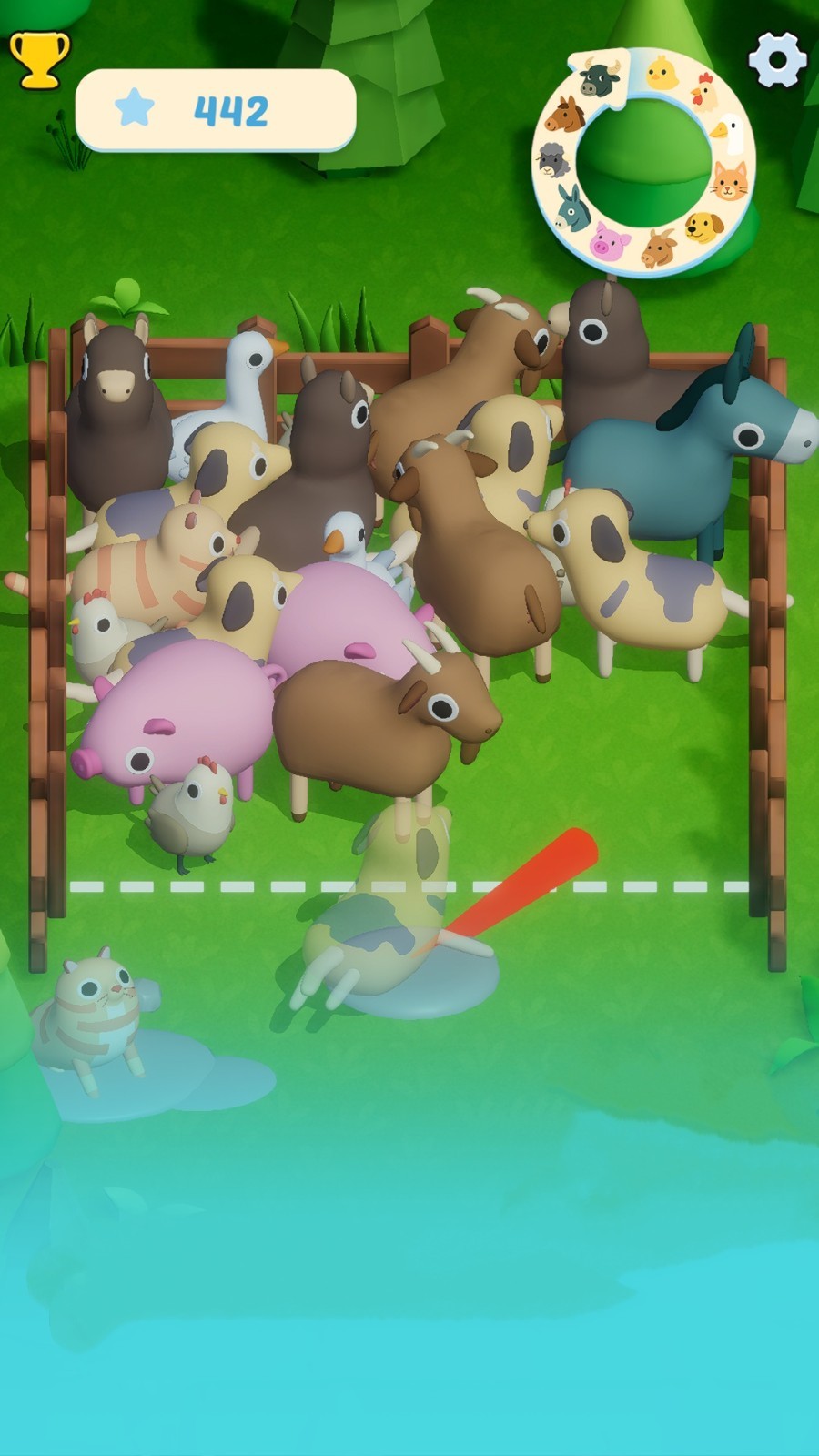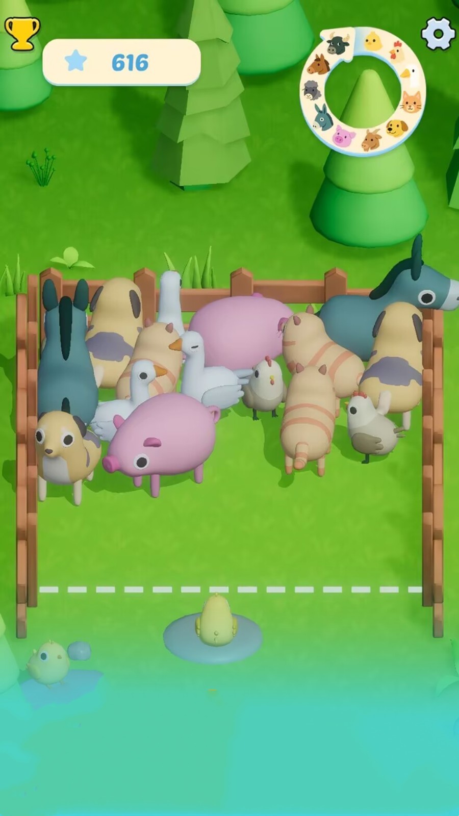3、随着栅栏中的动物越来越多,可以容纳新动物的空间会越来越小,玩家需要合理调整弹射位置,尽可能让动物合并来扩展空间。