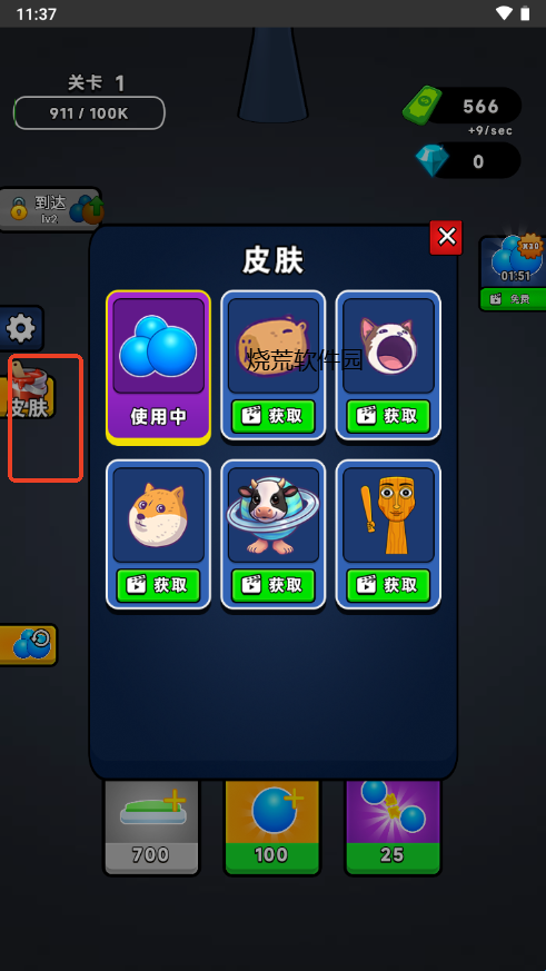 4、点击皮肤,观看视频即可获取卡皮巴拉、木棍人等皮肤喔!