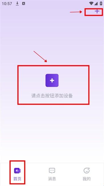 1、登入软件后在【首页】点击中间的+号按钮或是右上角+号添加设备。