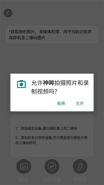3、进入扫描页面,使用手机摄像头对准设备上的二维码或是添加好友分享的设备,只需直接扫描朋友分享的二维码即可。