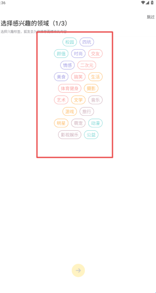 1、第一次进入软件,能够选择兴趣领域,选择之后会精准推荐;