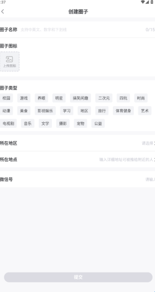 4、点击创建圈子,能够创建属于自己的圈子,填写信息提交即可!