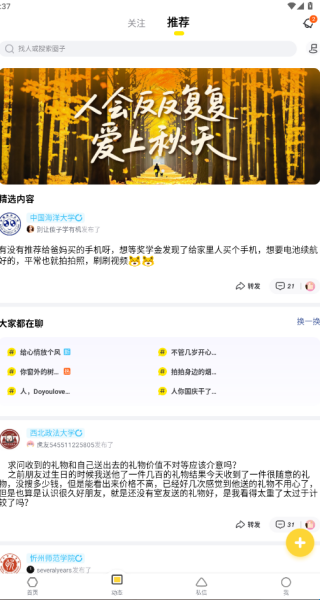 2、正式进入首页,能够查看推荐板块的优质推荐用户和动态;