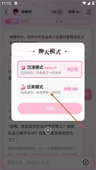 3、聊天时可以点击右上角的模式切换快速切换到想要的模式中,例如日常模式可以快速地反应