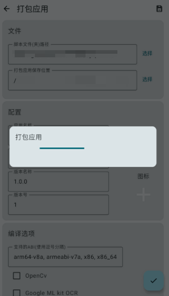 确定好应用的名称,图标,点勾选打包按钮开始打包。