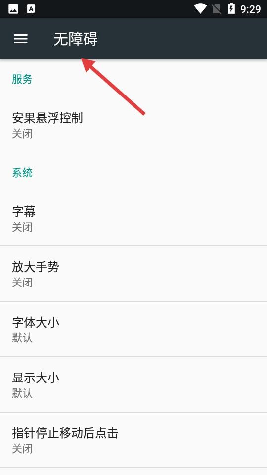 1、点击无障碍设置页,将安果悬浮控制权限打开。