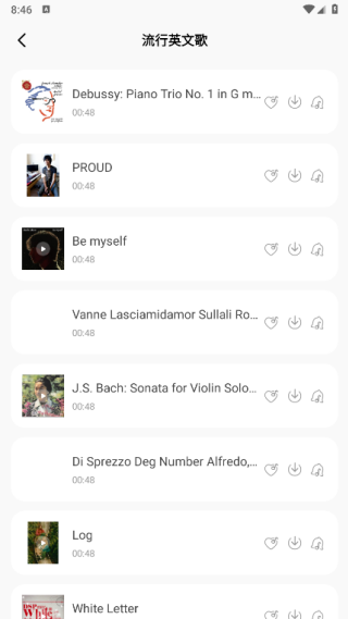 2、在流行英文歌页面中可以了解哪些英文歌更受欢迎,让用户可以下载和试听;