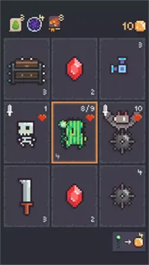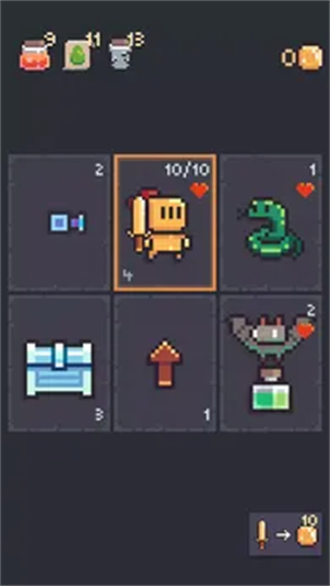 4、经典的像素游戏风格,游戏融合了多种不同的元素。丰富的卡牌可以选择,进行策略对战。