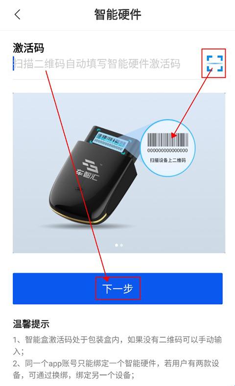4、设备绑定 最后用户就可以选择输入设备码或者直接扫描设备上的条形码进行设备的绑定啦!