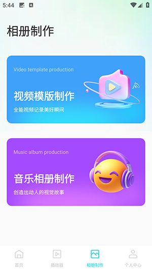 3、支持导入图片素材并搭配背景音乐,自动生成动态音乐相册,可添加过渡动画与文字说明,记录生活片段并转化为影集作品。