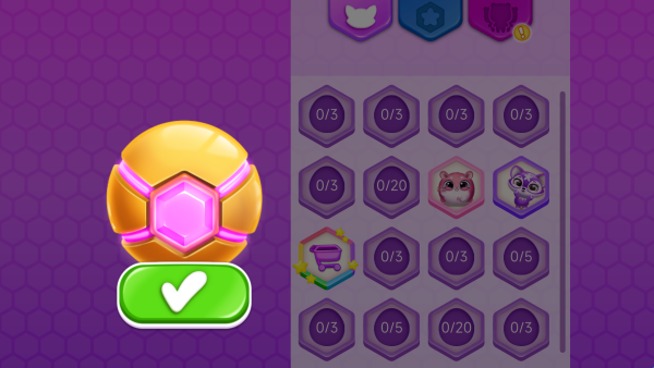 3、获得金色宝箱后,点击绿色对勾领取奖励,这些奖励可用于解锁新的小动物、道具或场景。