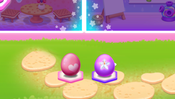 2、遇到粉色和紫色的蛋时,优先解锁并孵化它们,不同图案的蛋可能孵化出不同的小动物或道具,孵化后可用于后续的合成或装饰场景。