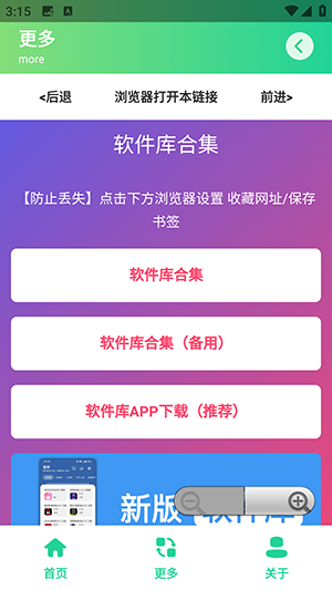 1、点击更多板块,点击软件库合集。