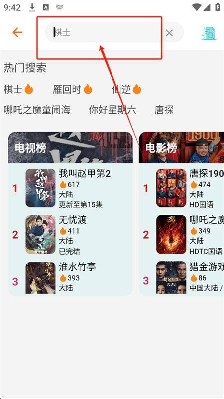 2、直接在搜索框输入影视作品名称,点击搜索。