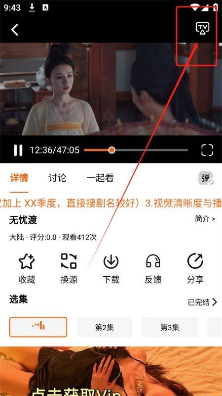 3、然后进入播放页面,然后点击TV投屏按钮。