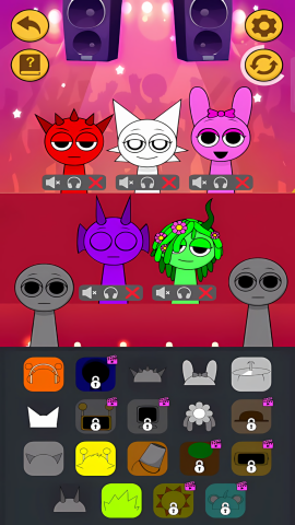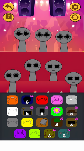 4、点击每个角色下方的音效按钮可实时调整乐器配置,通过组合不同音色创作个性化音乐片段。