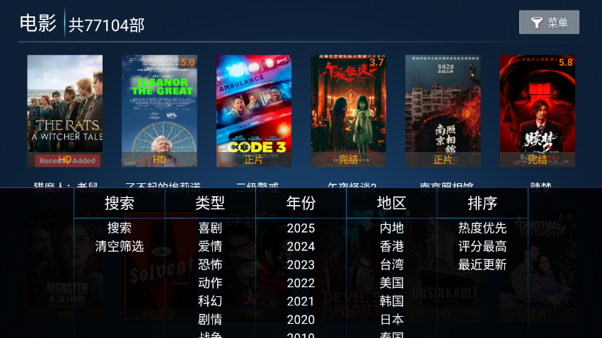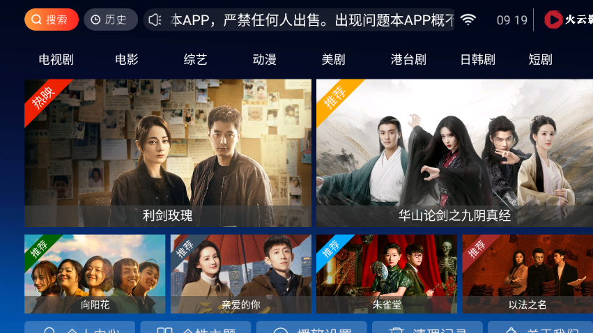 1.请在本站下载安装并打开火云影视TV版,进入软件可以看到上方有着最新的电视剧、电影、综艺、动漫、美剧等板块内容。