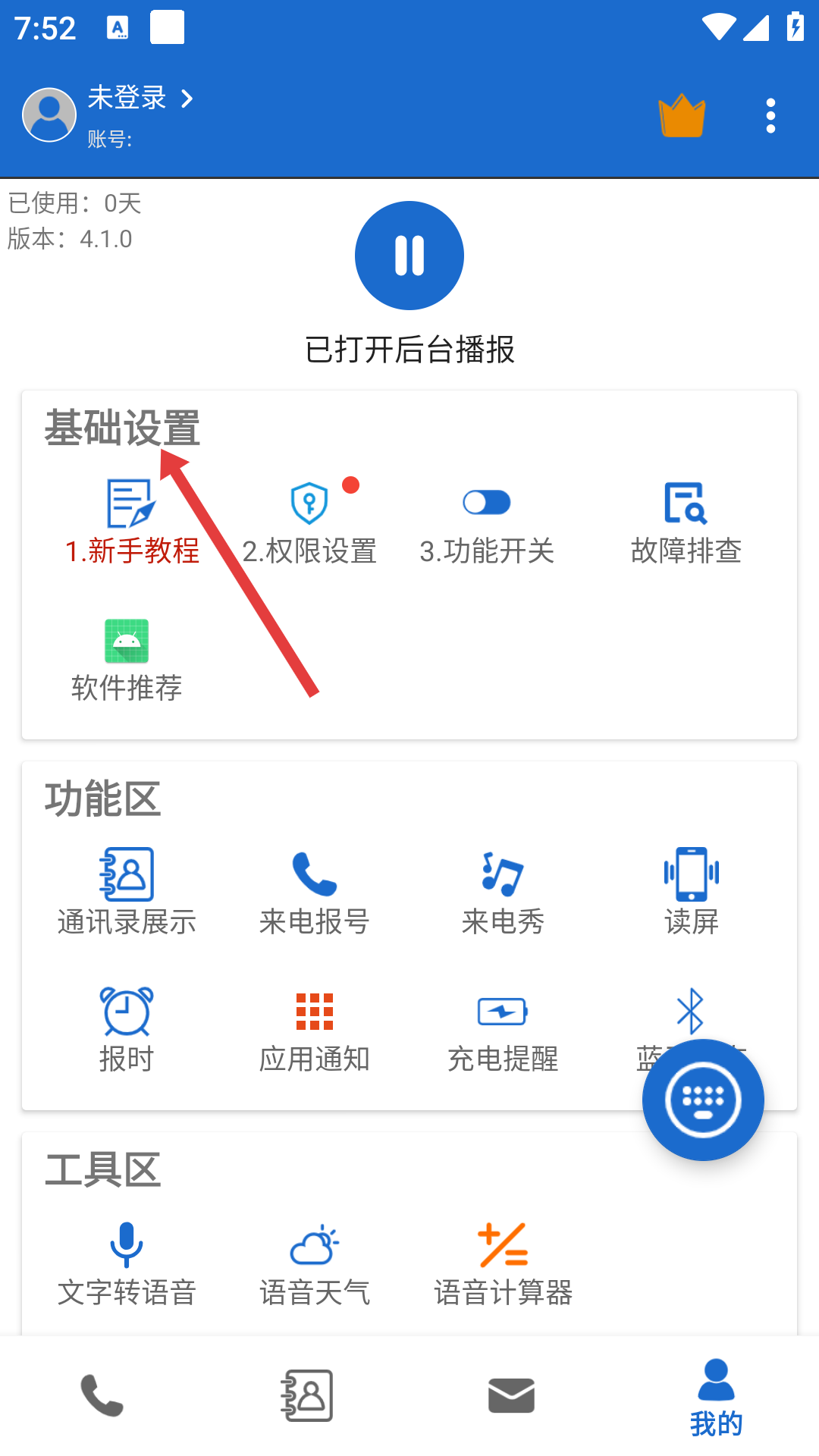 3、回到我的页面在功能区有来电报号、报时等播报相关功能,可在基础设置里通过功能开关统一管理播报功能的开启与关闭,个性化设置语音播报。