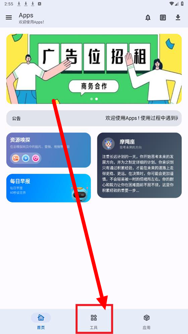 4、进入工具界面:在主页上,点击“工具”选项,进入工具界面。这里提供了海量的生活日常工具、系统操作工具以及图片相关工具,供您使用。