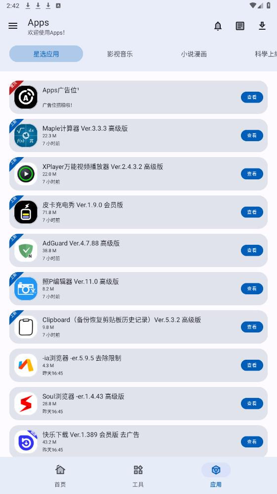 Apps软件库为用户提供海量的应用资源。软件内的应用资源丰富多样,各种类型的软件都应有尽有,像破解版、海外版更是数不胜数,并且全部都是免费提供下载链接的哦!软件内还有超多的游戏下载资源,并且是一直持续高效的。还有超多实用工具等你下载体验!