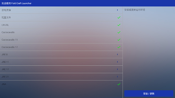3、点击安装/更新,在线安装/更新运行环境。