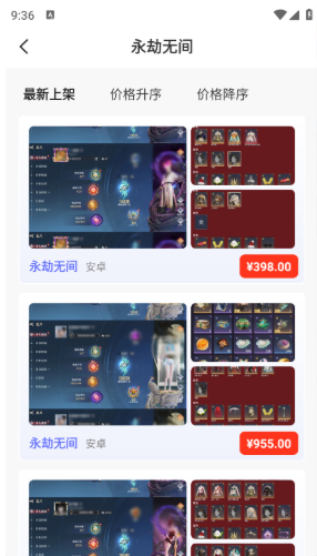 4、点开想要购买的游戏账号类型,就会出现很多的游戏账号。