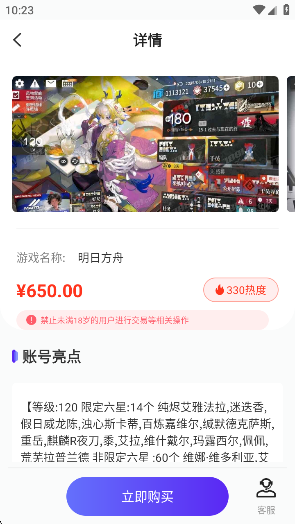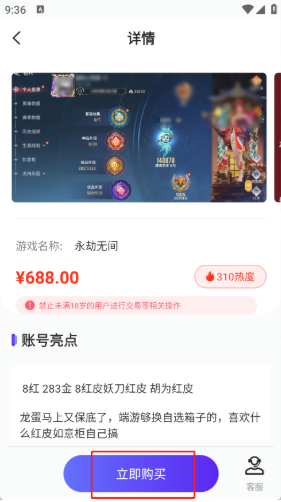 5、进入游戏账号详情页,点击“立即购买”即可。