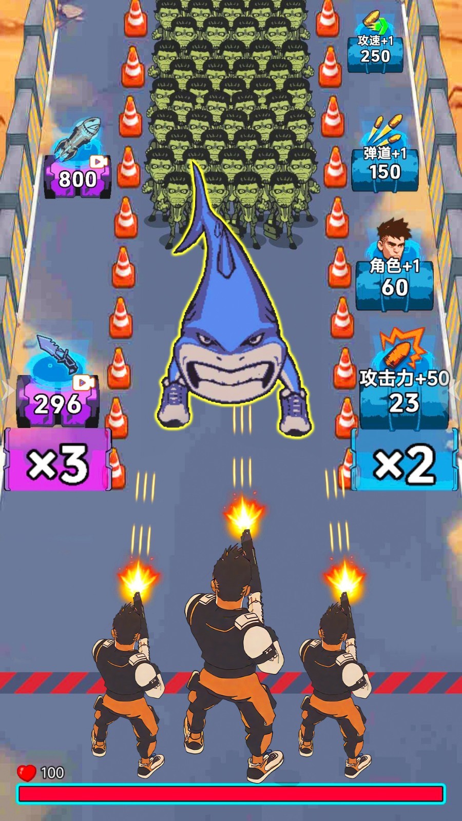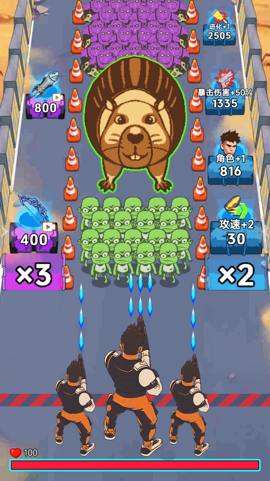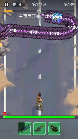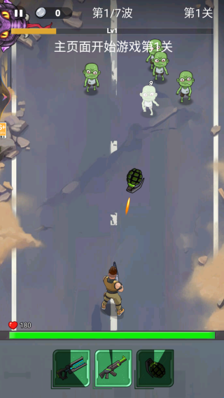 2、第 1 关第 1 波丧尸来袭时,优先使用手雷攻击集群的绿色丧尸,利用手雷的范围伤害快速清理敌人。