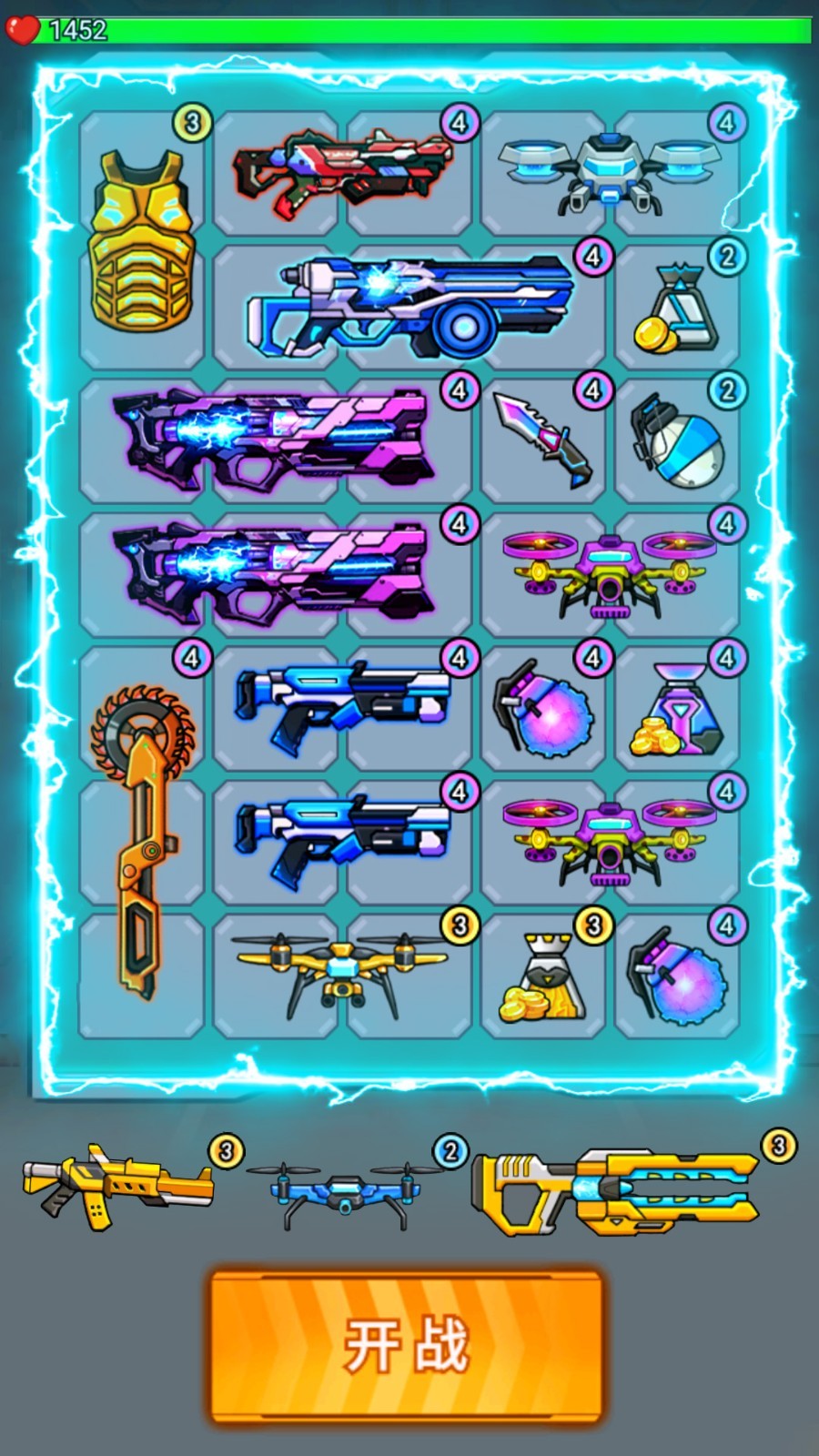 1、在武器选择界面,优先搭配高伤害的科幻机枪与手雷,确保输出能力。