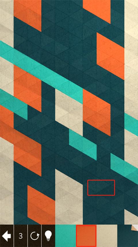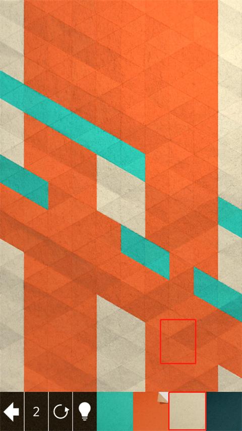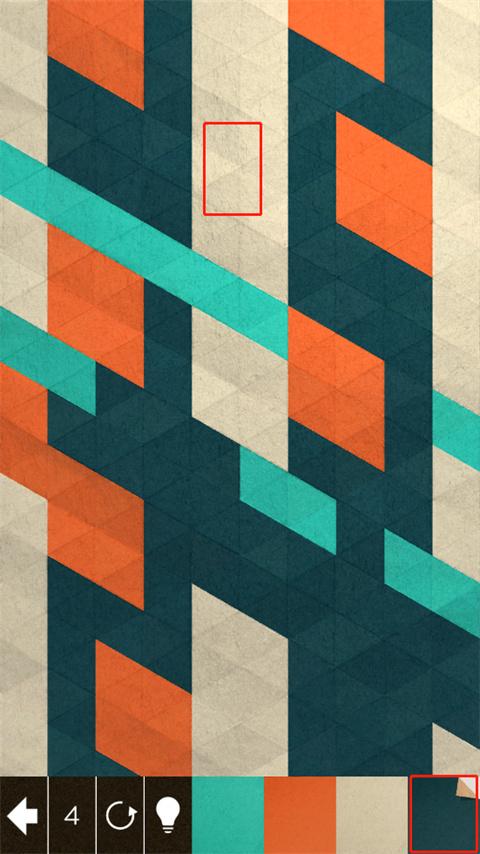 1、游戏的玩法还是比较简单的,在进入关卡之后玩家可以看到一张张不同颜色的折纸组成的一大张折纸,玩家所要做的就是需要将这些折纸全部都换成同一种颜色。