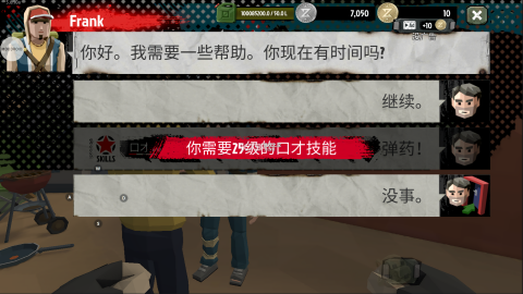 2、找到Frank之后,他会提供一些武器以及弹药给你;