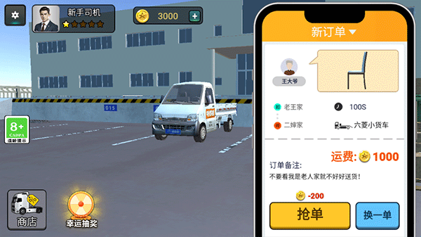 1、进入游戏后发现有新的订单点击接单即可