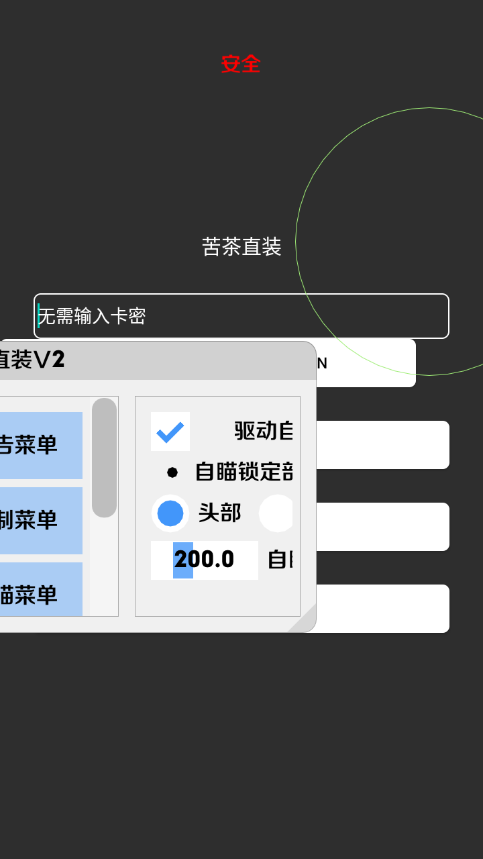 和平精英茶茶直装永久免费版可以为游戏玩家提供不错的功能,让用户在里面轻松进行吃鸡,并且软件支持悬浮窗功能,让用户轻松开启各种实用的功能,不管是锁血、锁头还是除草、视野穿透等,都能轻松满足用户的需求,帮助玩家轻松吃鸡!