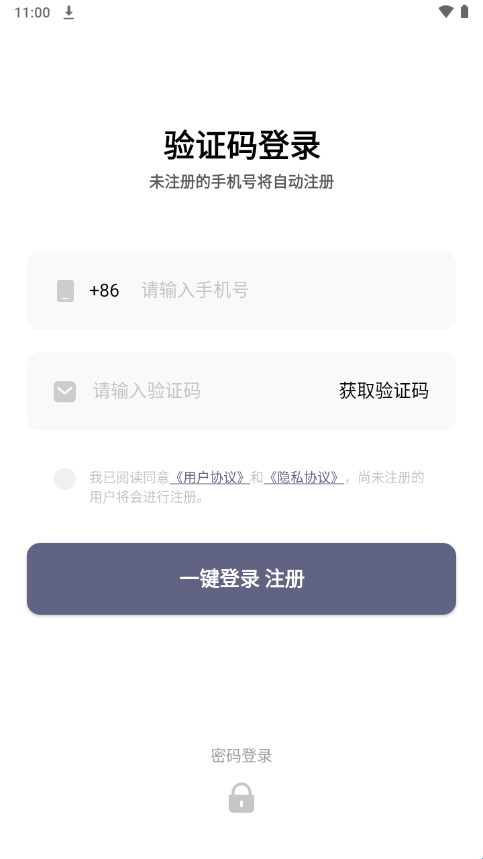 点击“登录”即可;若选择验证码登录,输入手机号获取验证码后登录。新用户可点击“新用户注册”进行账号注册。