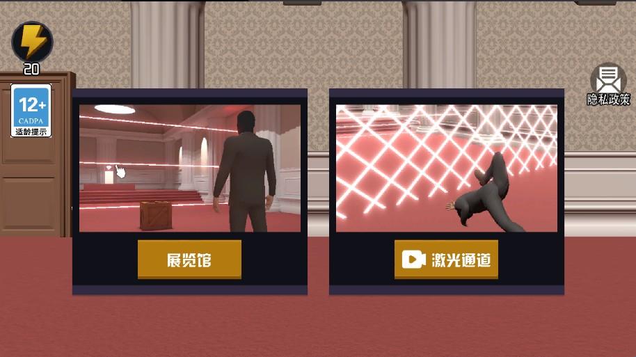 2、在主界面中选择“展览馆”作为你的作案目标,该场景内有丰富的展品和重重机关等待你去破解,是游戏中较具代表性的挑战关卡之一。