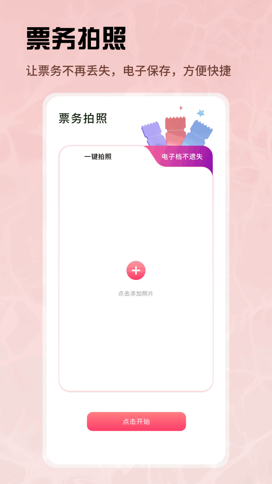 1、点击添加票务,可以通过拍照的方式添加照片保存票务详情。