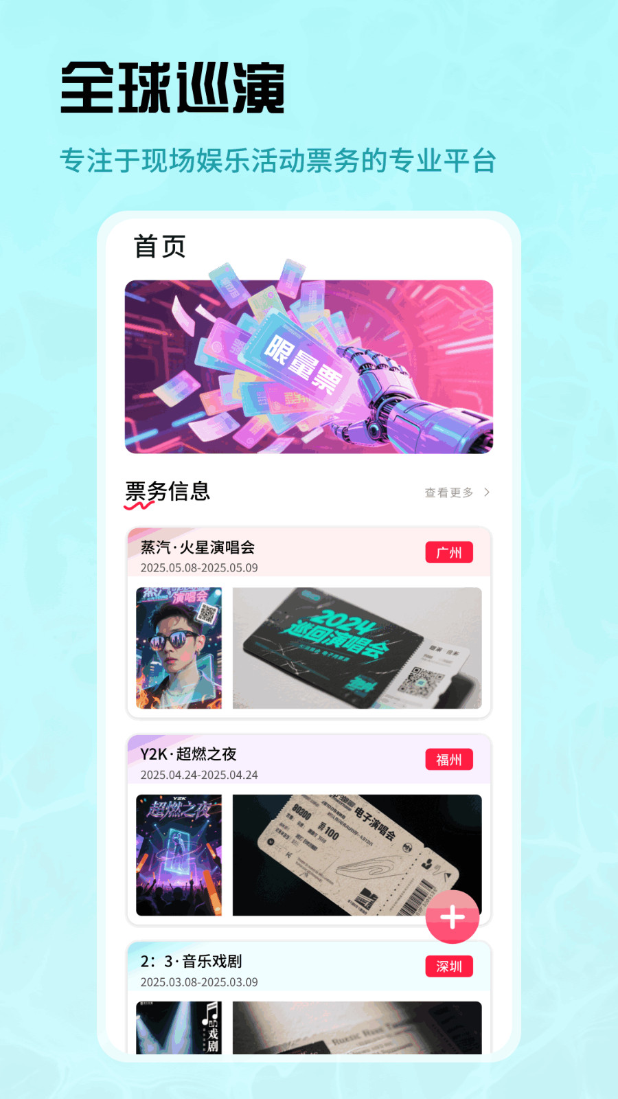星球票务app官方版可以为用户提供一站式的购票服务,让用户在里面轻松查看各种票务信息进行购买,不管是演唱会、音乐节还是电影、演出等票务,都能轻松满足用户的购买需求,并且还能进行在线记录打卡,方便用户后续回顾,喜欢的朋友快来下载试试吧!