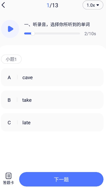 3、点击去练习,就可以练习英语听力了。