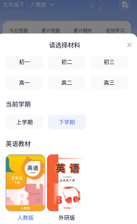 2、选好你的年级,教材类型。