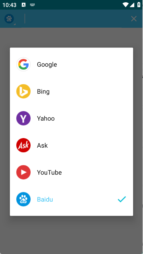 2、进入到首页选择要使用的浏览器,默认的是百度浏览器。