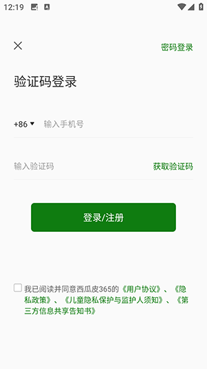 3、未注册的手机号登录即可注册。