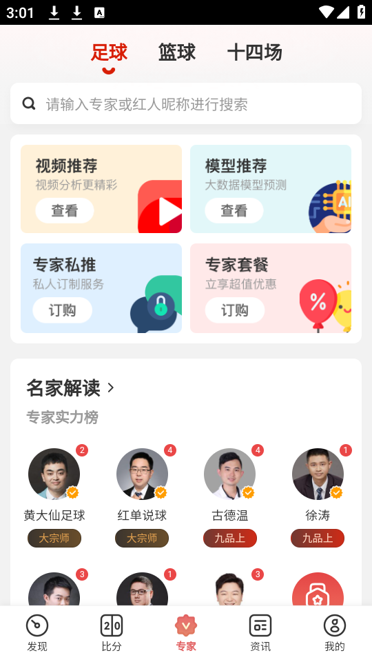 汇聚体育行业内知名专家,提供专业足篮球赛事分析。更有实战红人用战绩说话。