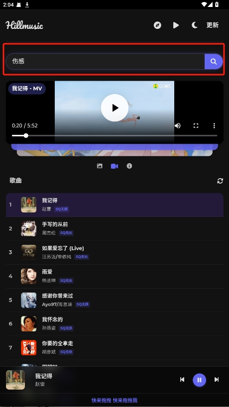 2、MV获取:搜索歌曲时,若有MV,可一并返回,视听结合。