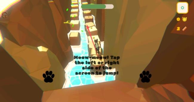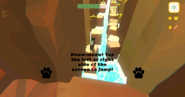 1、点击控制着猫咪进行跳跃,左侧按钮控制往左跳跃,右侧按钮控制往右跳跃。