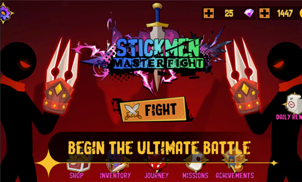 火柴人大师之战无广告版是一款动作格斗类游戏,游戏采用经典火柴人主题,玩家操作火柴人进行各种闯关对决,游戏不仅有丰富的关卡,还有超多种类的武器自由选择,随着关卡的进行,战力突破后将解锁更多有趣玩法,且游戏内的广告都已解锁,玩家可以直接跳过领取广告奖励,喜欢的玩家快来下载试试吧!